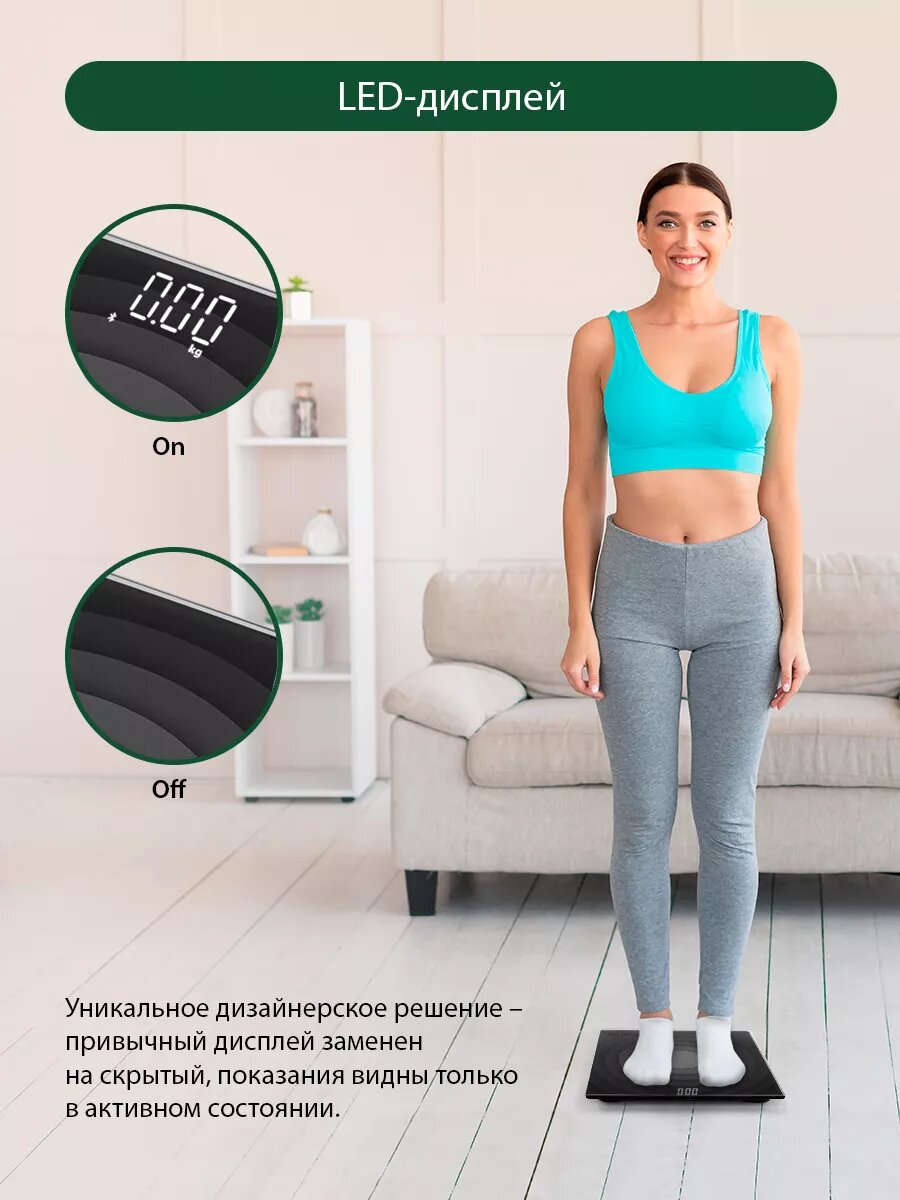 Весы напольные электронные,весы умные с Bluetooth, 30х30 см
