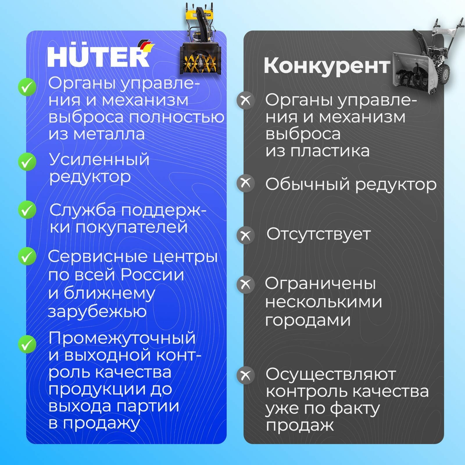 | Плюсы: | Мощный, производительный. Есть ручной и электростартер. При серьезных минусах не подводит. Нравится что есть подогрев ручек. |