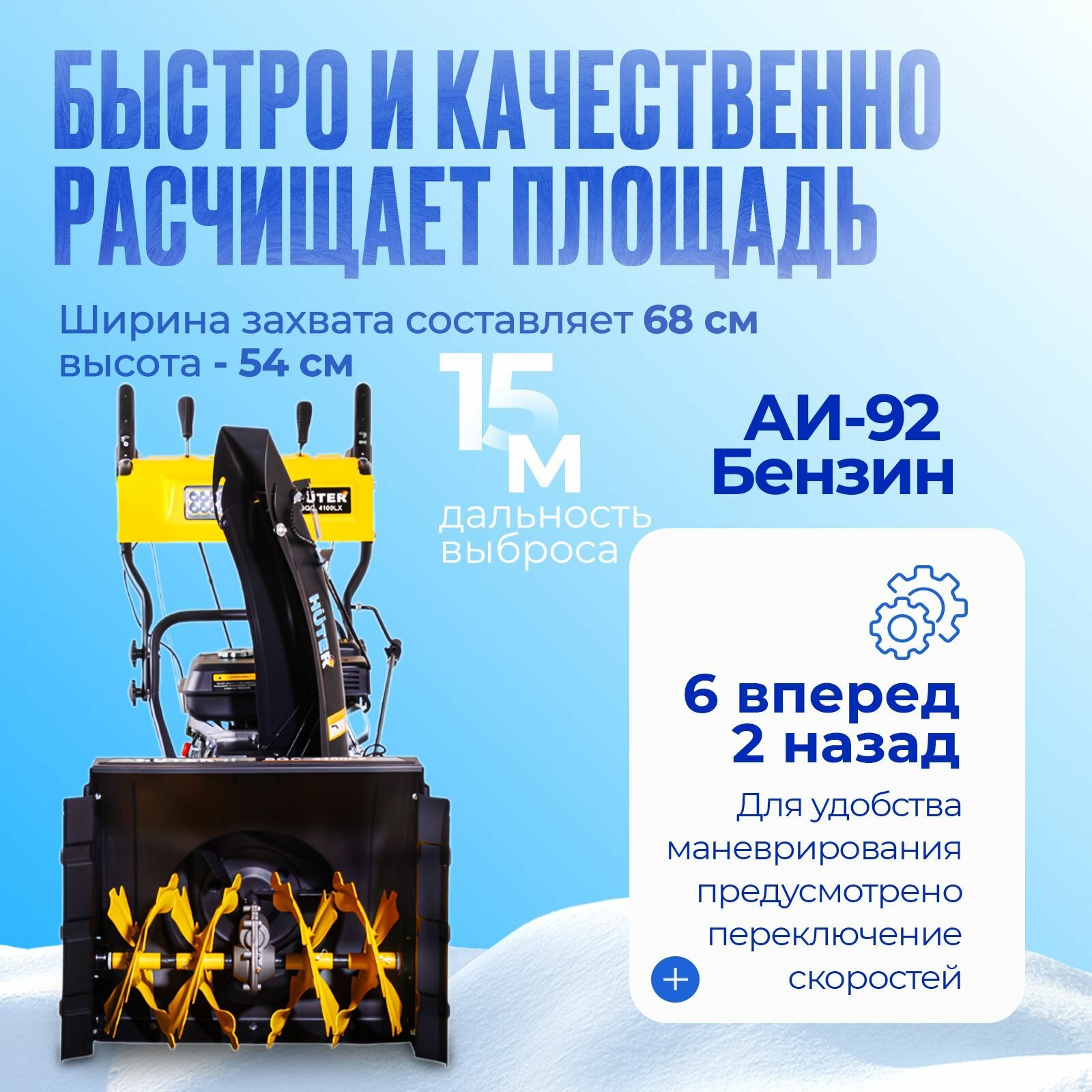 Снегоуборщик Huter SGC 62/54-6/2E, самоходный, бензиновый, 85кг