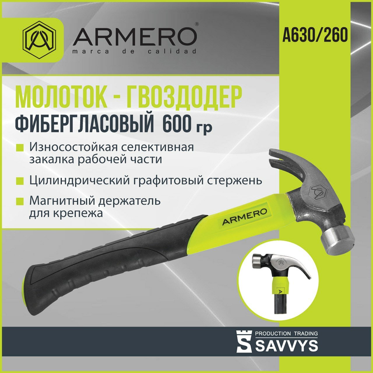 Armero Молоток - гвоздодер фибергласс, 600г А630/260 .