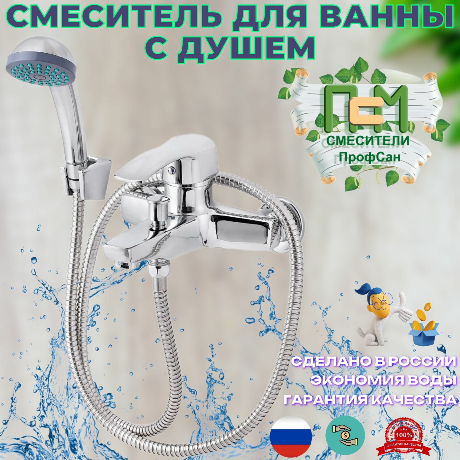 Смеситель для ванны с душем Псм-профсан PSM-815-023 Плюс тип см-ворншла .