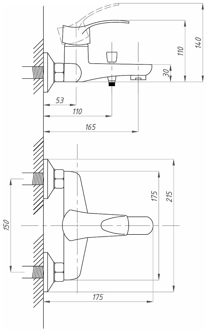 Смеситель для ванны Профсан Плюс ПСМ-815-023, однорычажный, хром