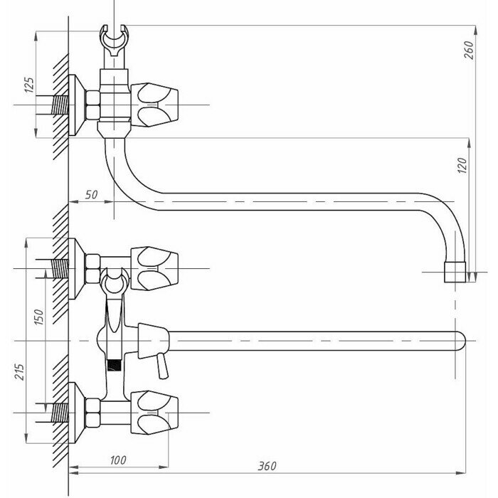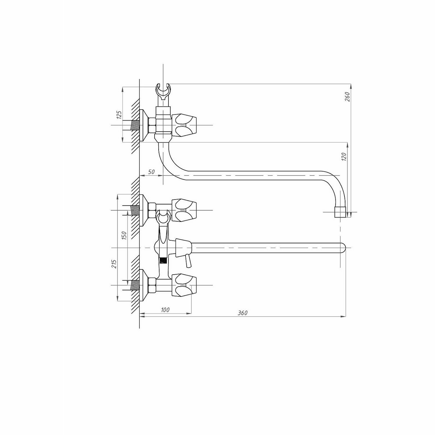 Смеситель для ванны и умывальника 1/2 кер ПСМ-157-48 евро тип см-вудрншла, экс "евро",крест