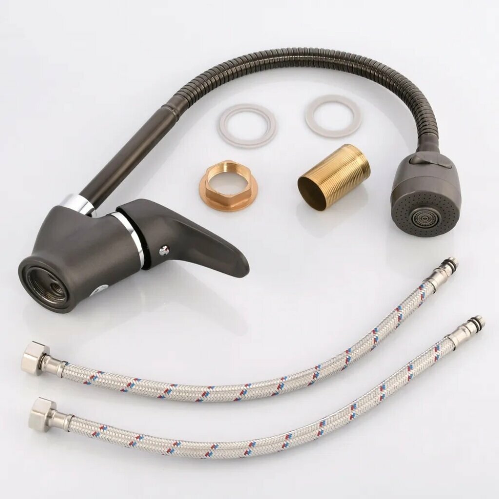 Смеситель на кухню Potato P0046S-6 с выдвижной лейкой, нержавеющая сталь, чёрный, крепление гайка