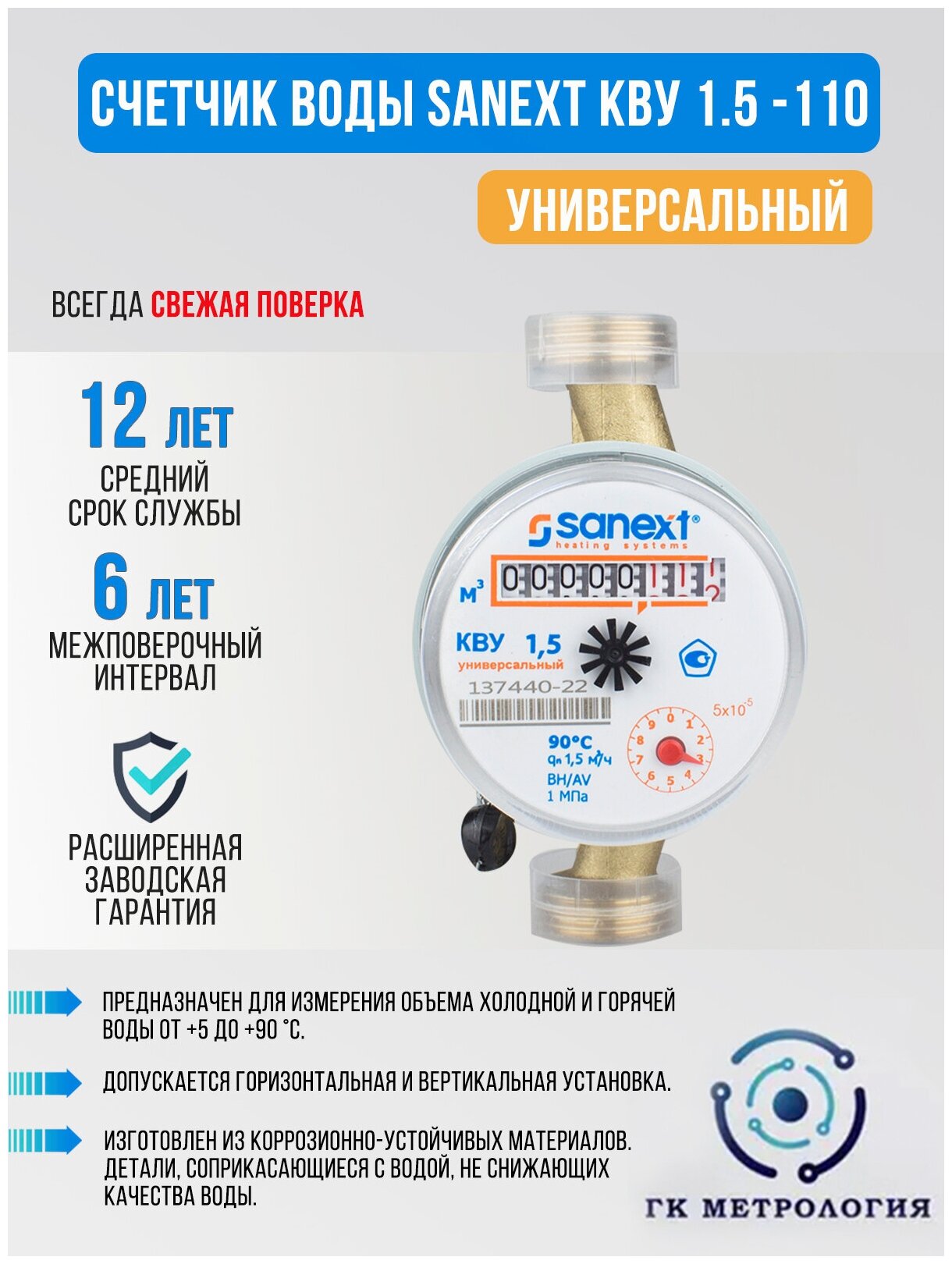 Купить Счетчик для холодной и горячей воды SANEXT КВУ 1,5-110 (7500)