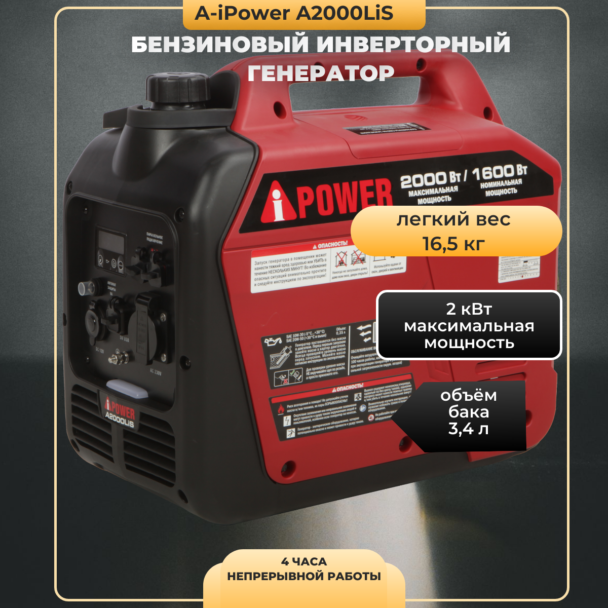 Купить Инверторный генератор бензиновый A-iPower A2000LiS ручной запуск 1600 Вт