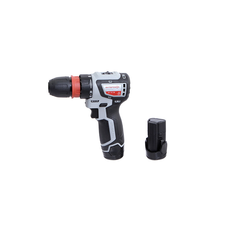 Бесщеточная аккумуляторная дрель-шуруповерт ИНТЕРСКОЛ комбимакс ДА-10/12В 36 687.2.2.77, сумка, 2 АКБ 2 Ач