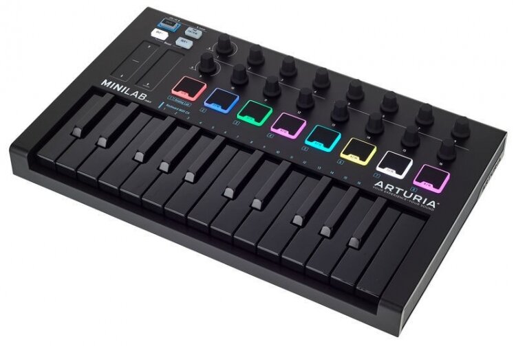 Ниже Вы можете прочитать отзывы на Arturia MiniLAB 3 Deep Black 25 клавишная MIDI-клавиатура пэд-контроллер, 9 регуляторов, 8 RGB п, ознакомится с подробными характеристиками, посмотреть интересные обзоры и фотографии на Arturia MiniLAB 3 Deep Black 25 клавишная MIDI-клавиатура пэд-контроллер, 9 регуляторов, 8 RGB п.