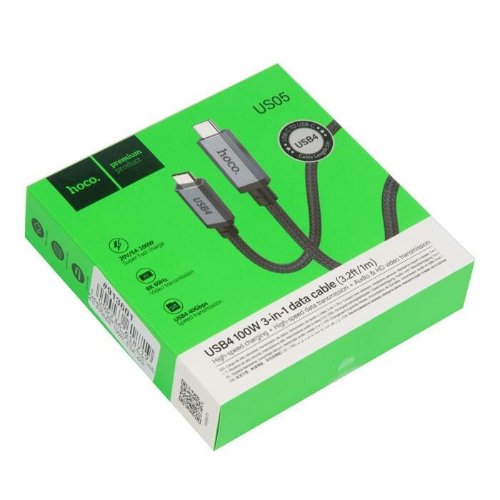 Купить Кабель Type-C на Type-C, HOCO, US05, USB4, 1м, 100W, 40Gbps, черный