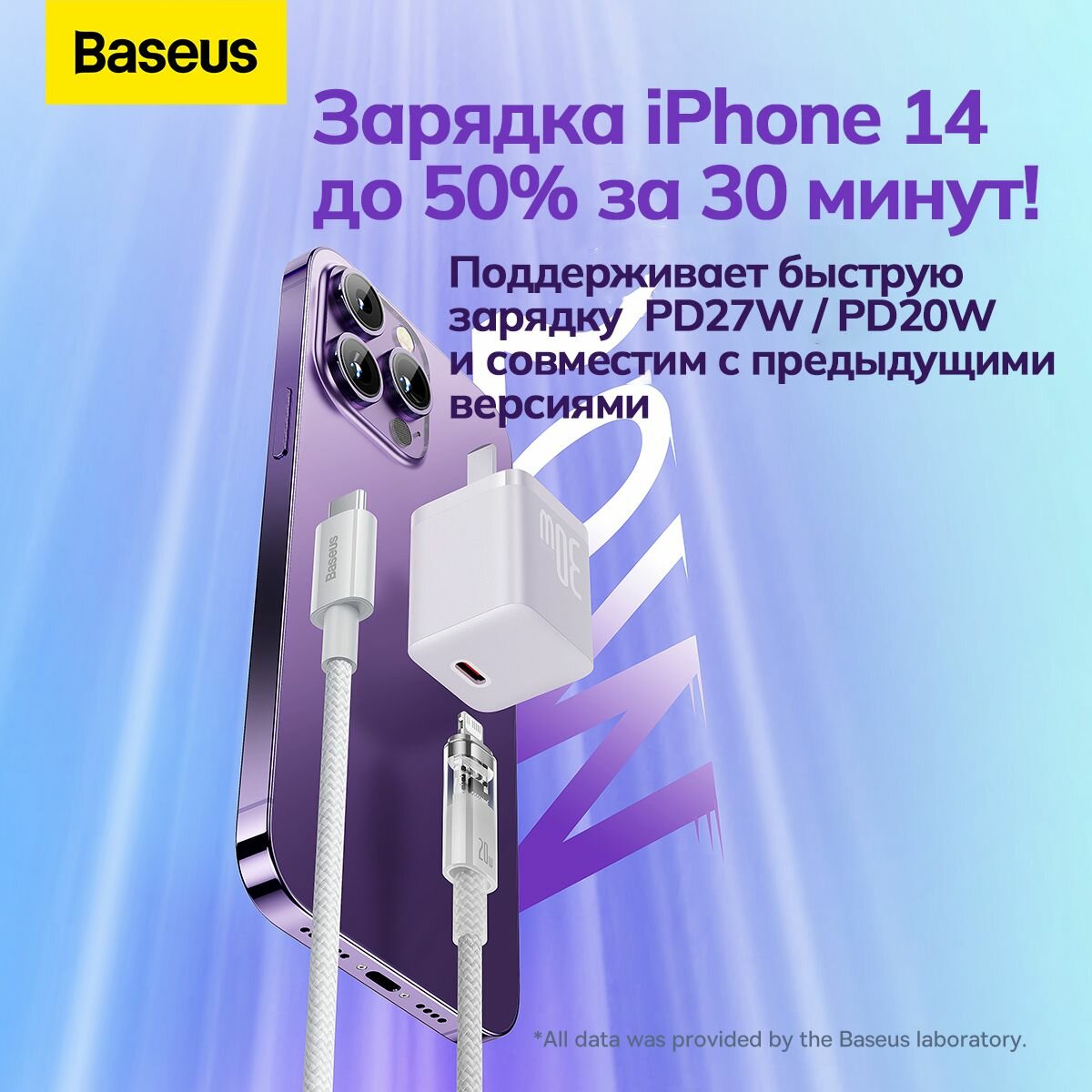 Кабель для быстрой зарядки серии Baseus Explorer с интеллектуальным контролем температуры Type-C до iP20 Вт 1 м фиолетовый CATS010205