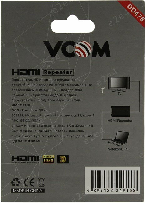 Усилитель/ Усилитель (Repeater) HDMI сигнала до 40m VCOM