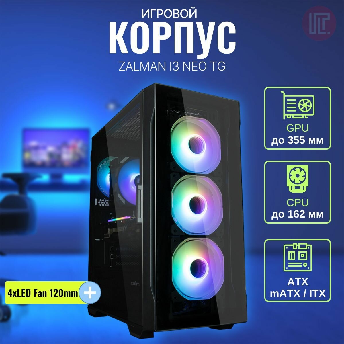 Корпус Zalman i3 NEO Black Mid Tower (ATX/M-ATX/Mini-ITX, без БП, Steel, Plastic, Tempered Glass, 4x120mm FAN RGB)
