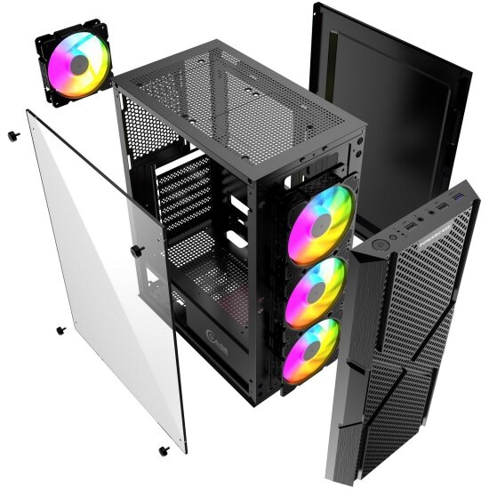 Powercase Mistral T4b, Tempered Glass, 4X 120MM 5-COLOR Fan, Чёрный, ATX (cmitb-l4) .