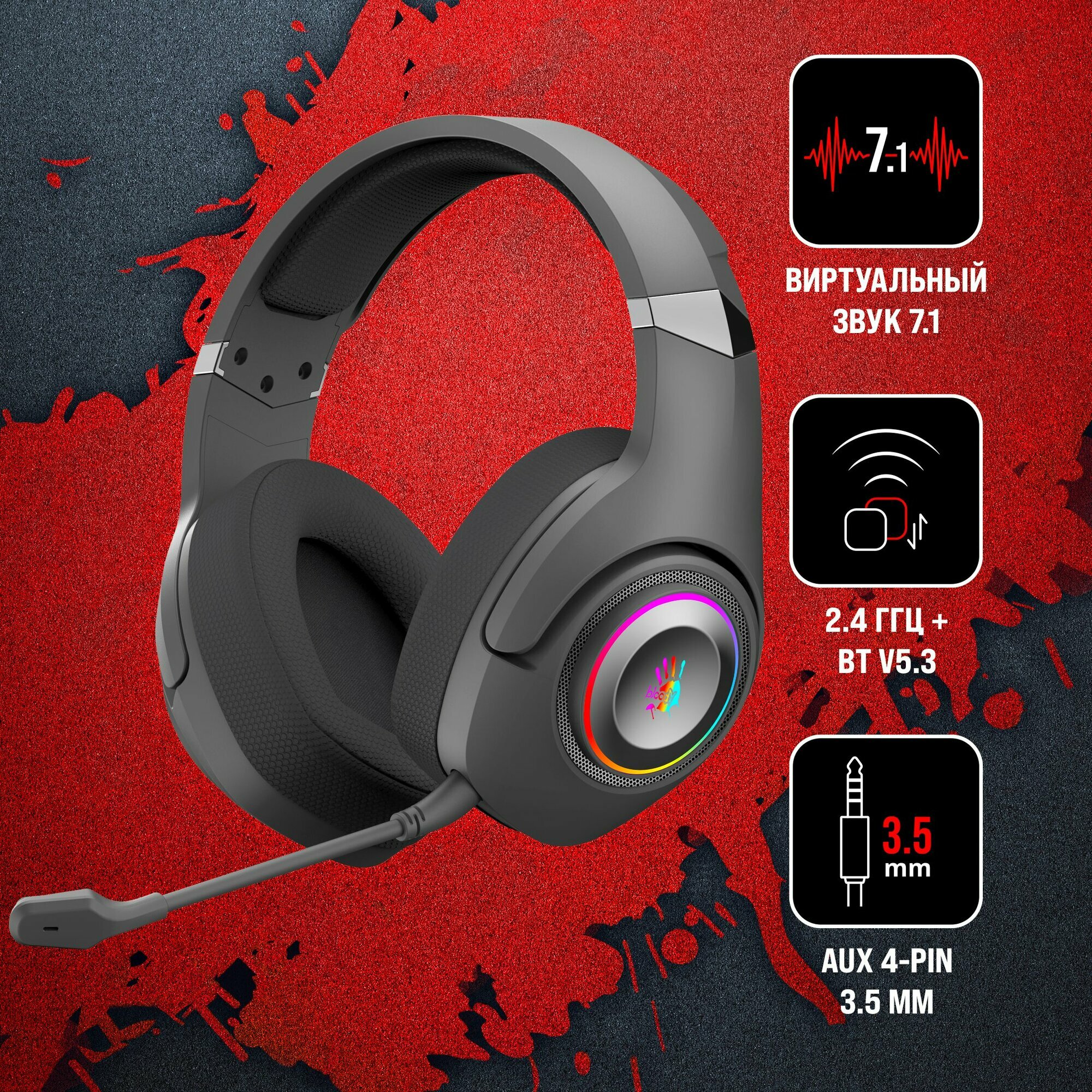 Наушники игровые A4Tech Bloody GR270, черный, мониторные, bluetooth/радио/USB, 1.5 м