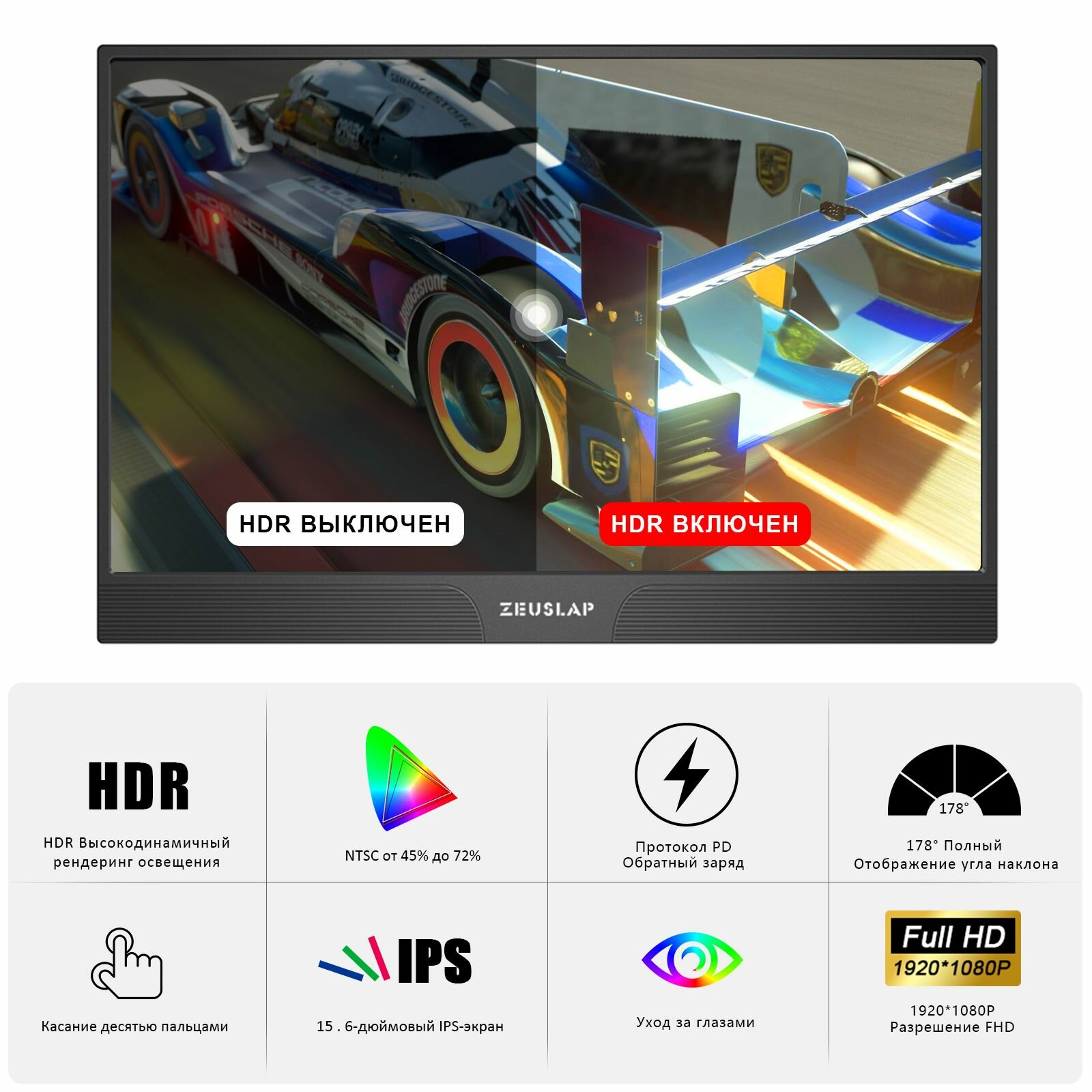 Игровой монитор Zeuslap Z15ST, диагональ 15.6", IPS, разрешение 1920x1080