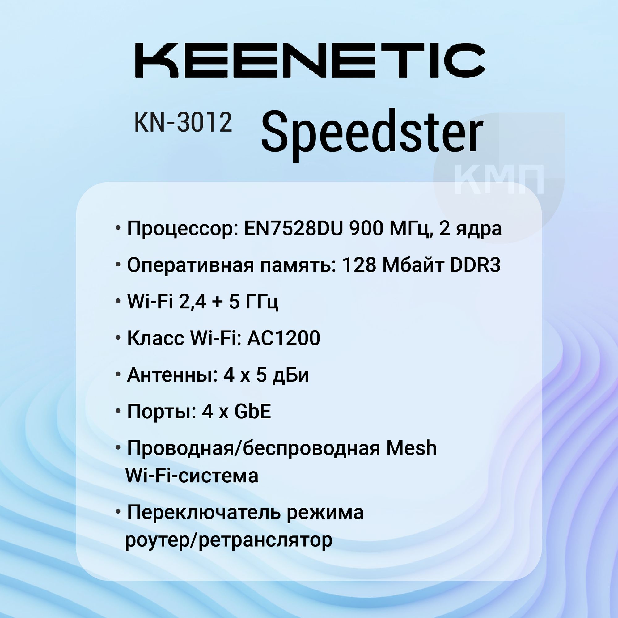 Ниже Вы можете прочитать отзывы на Гигабитный интернет-центр Keenetic Speedster (kn-3012) с Mesh Wi-Fi 5 Ac1200, 4-портовым Smart-комму ., ознакомится с подробными характеристиками, посмотреть интересные обзоры и фотографии на Гигабитный интернет-центр Keenetic Speedster (kn-3012) с Mesh Wi-Fi 5 Ac1200, 4-портовым Smart-комму ..