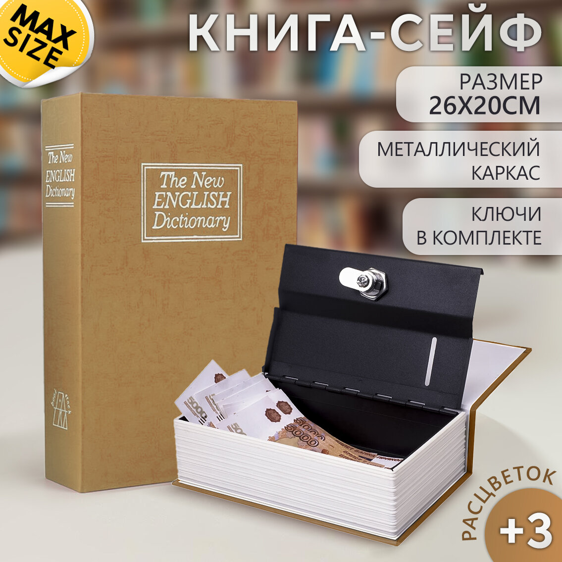 Купить Копилка с замком "Книга Английский словарь" 26х20 см коричневый, для денег, сейф с ключом, шкатулка металл, подарочная