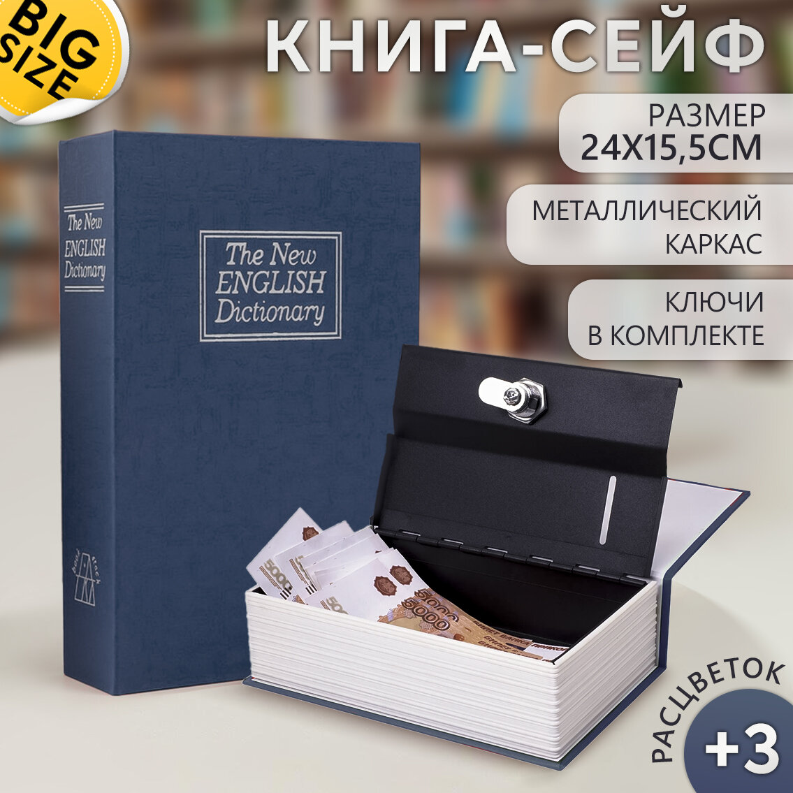 Купить Копилка Книга с замком "Английский словарь" 24х16 см синий, для денег, сейф с ключом, шкатулка металлическая, подарочная