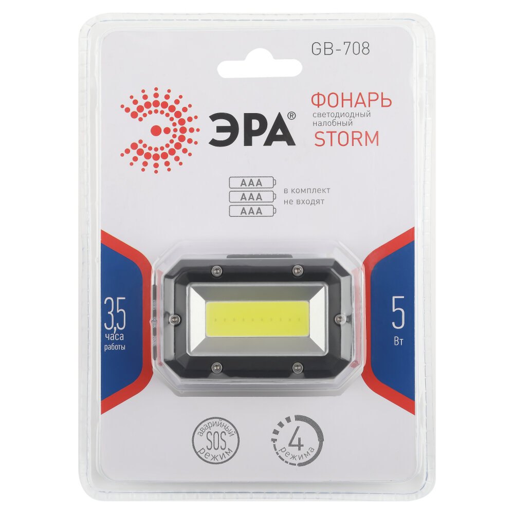 Фонарь налобный светодиодный GB-708 "Шторм" на батарейках 3 режима 5Вт СОВ 3хААА | код Б0052750 | Эра (2шт.в упак.)