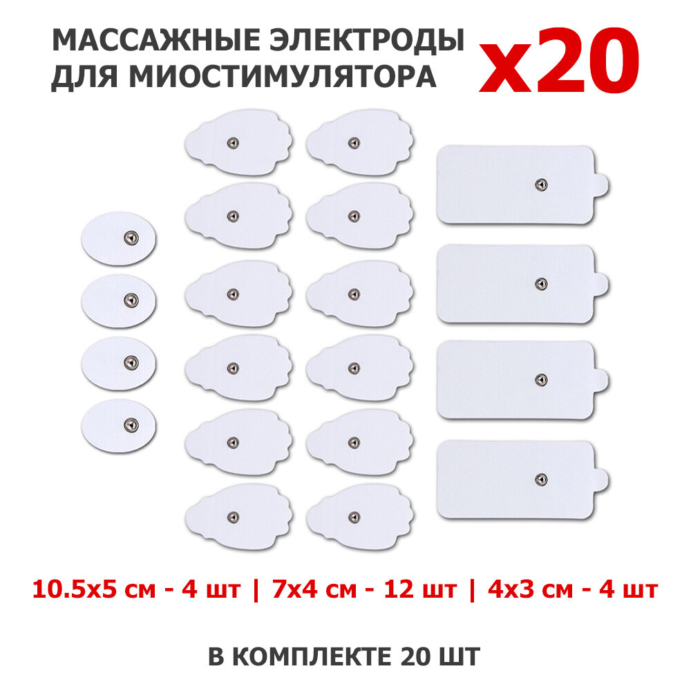 Электроды массажные EMS-120PL для миостимулятора, 10.5х5/7х4/4х3 см, 20 шт, универсальные интересное: