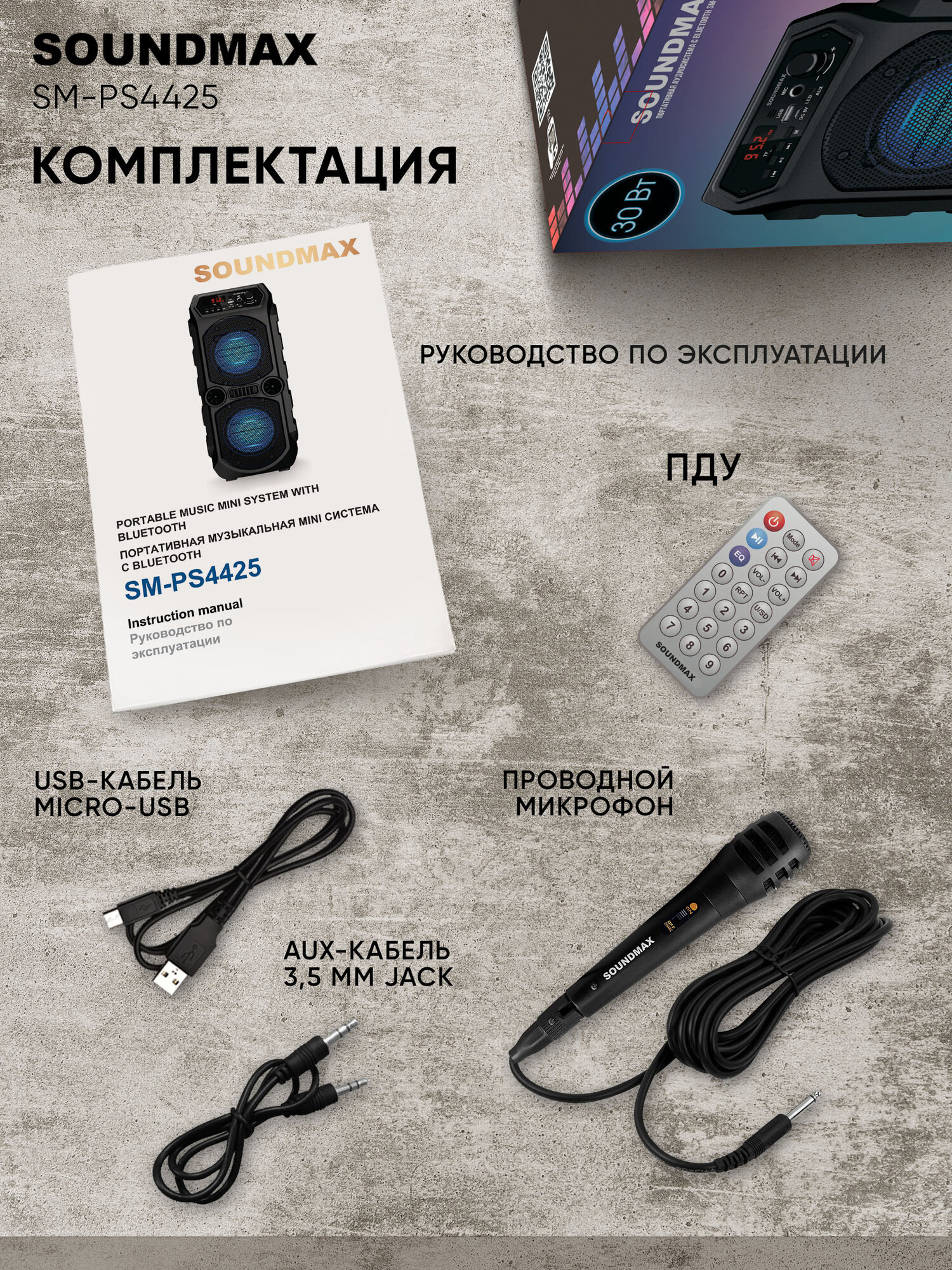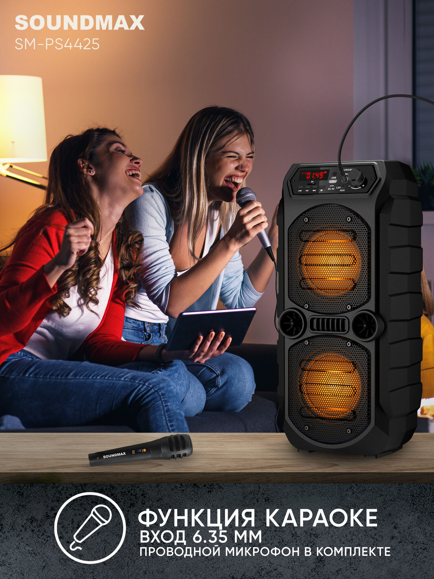 SOUNDMAX Портативная караоке система Soundmax SM-PS4425, 30 Вт, 1200 мАч, BT,SD, AUX, USB,подсветка