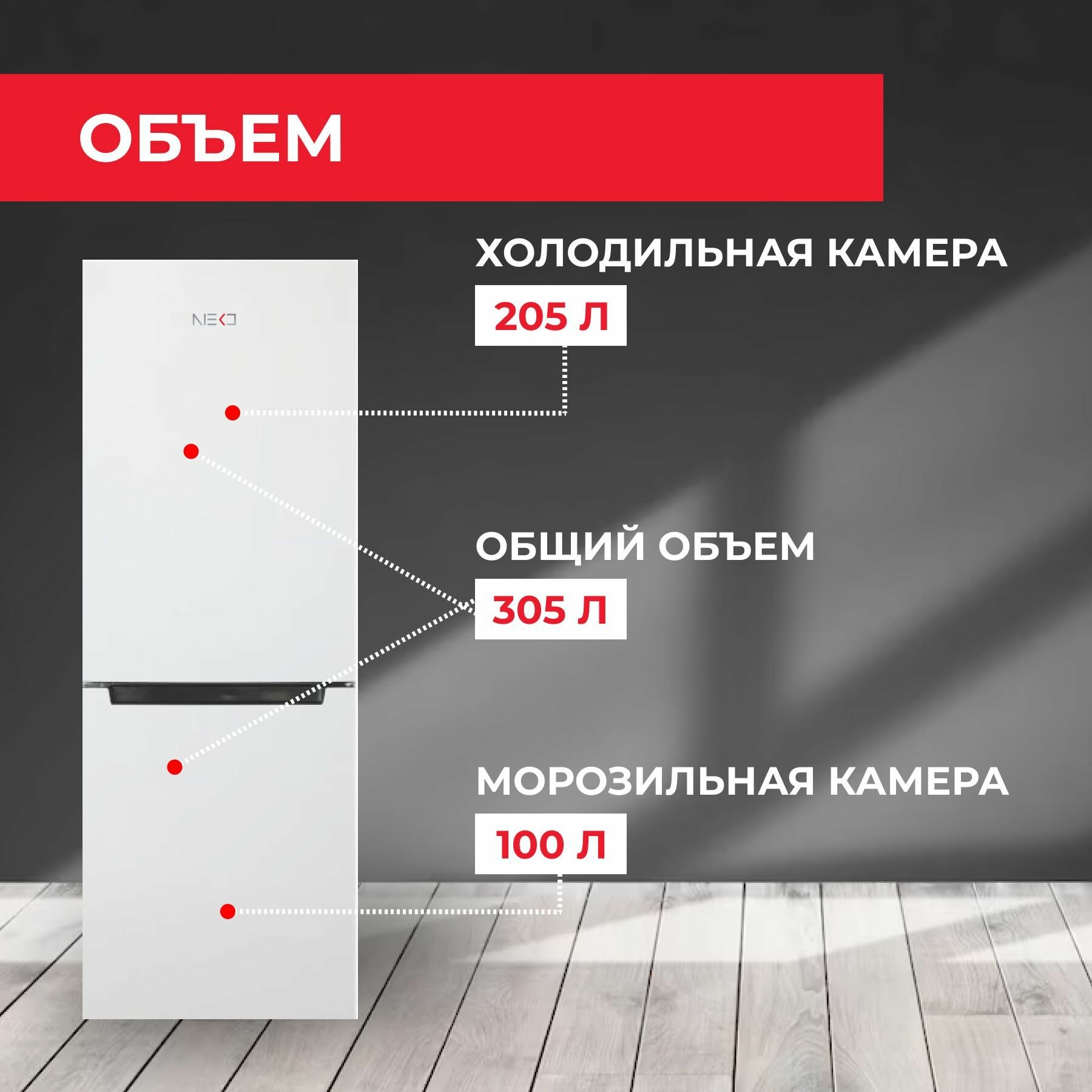 Холодильник двухкамерный NEKO FRB 185, объем 305 л, высота 182 см, белый интересное: