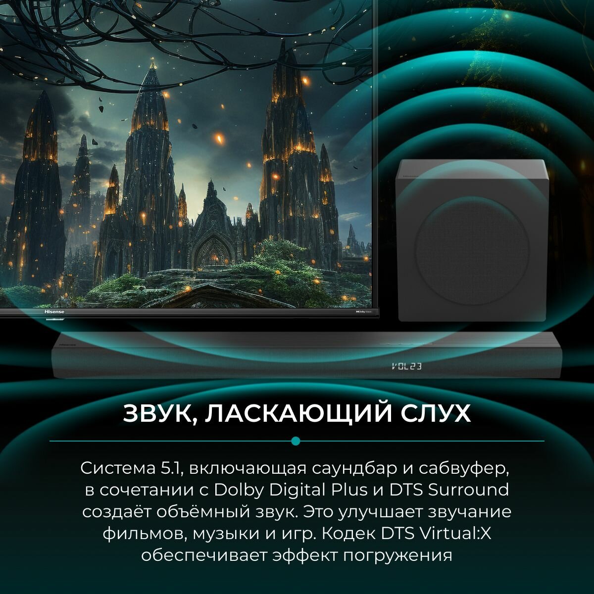 Саундбар Hisense U5120G 5.1.2 510Вт+180Вт черный, Поддержка Dolby Atmos, Поддержка Dolby Digital