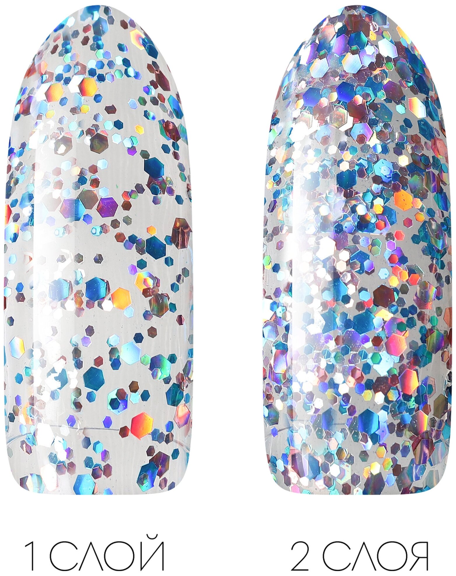Гель-лак для ногтей Vogue Nails Мулен руж, полупрозрачный в банке с блестками галография, синий, Блестящее шоу, 5 мл