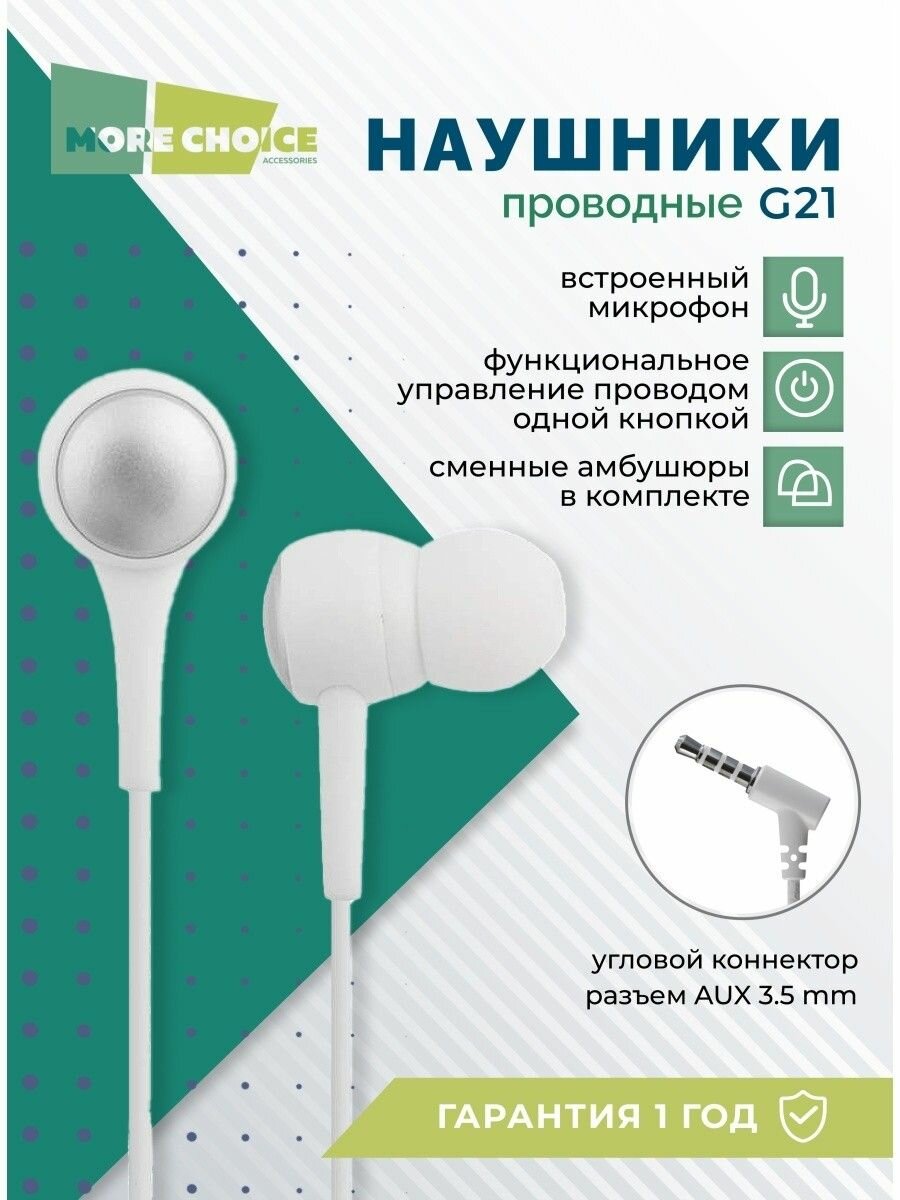 Наушники вакуумные More choice G21 White