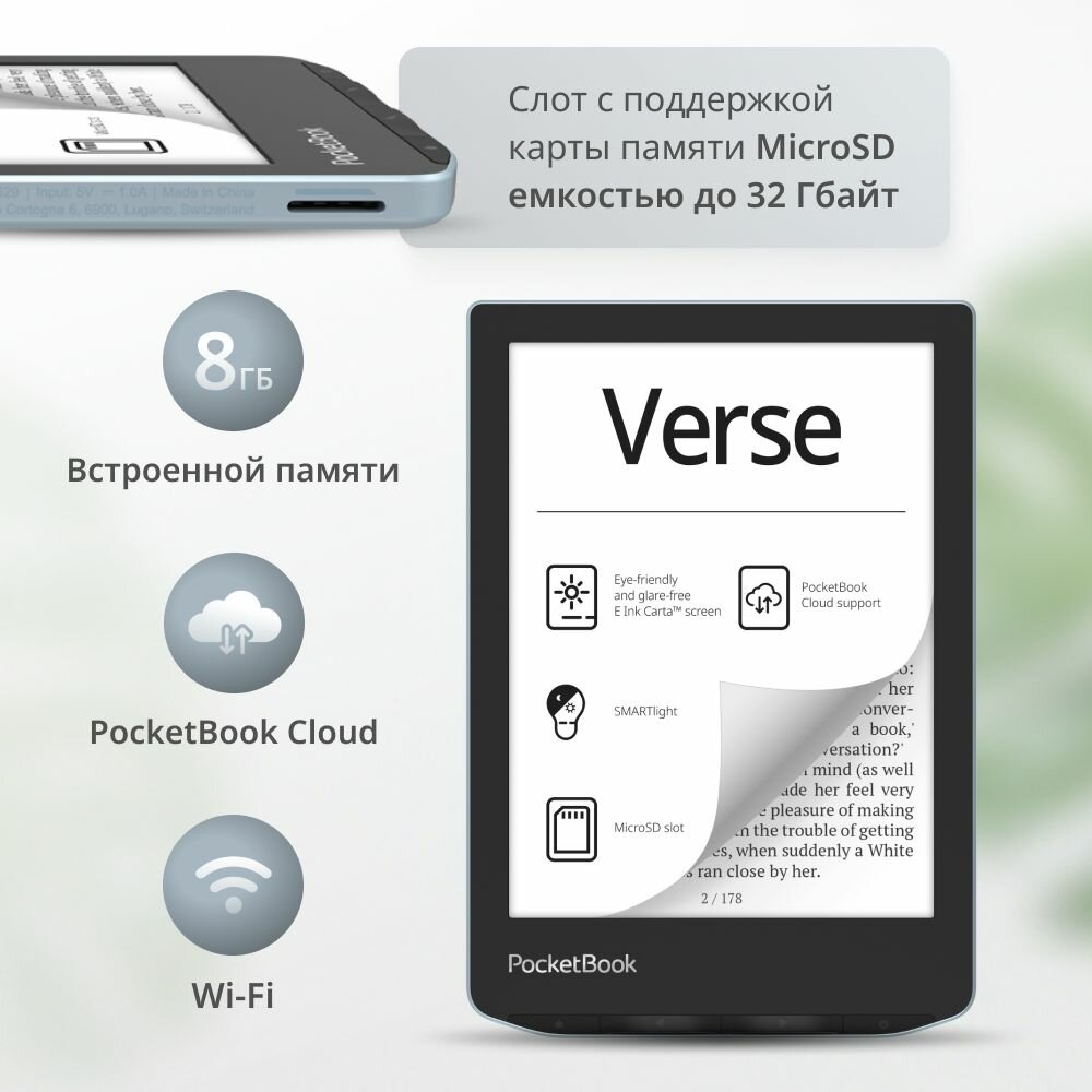 6"Электронная книга Pocketbook Verse PB629 (PB629-M-WW), Mist Grey