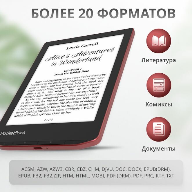 | Отзыв: | Недаром эта книга получила Reddot Award за дизайн. Среди прочих глаза сразу цепляются за нее. Помимо красивости дизайна, это еще и удобно – выступ с кнопками сбоку, держать и листать удобно. Внутри хорошо знакомый интерфейс, быстрый и практичный. Экран все на дюйм больше стандартных читалок, но разница в восприятии ощущается. Взял версию на 16 гиг, есть еще на 64, но мне не попадалась, да и стоит, наверное, раза в полтора дороже такая. В ней есть Wifi, а соответственно, почта, Дропбокс, облако, и Bluetooth (подключение беспроводной аудиотехники). Книга защищена по ipX8 от воды и пыли. Есть встроенный динамик. Зарядка type-c. Экран просто огонь, как будто офсетная бумага с печатным текстом. Для слабо освещенных помещений предусмотрена подсветка. Отдельно приобрел чехол с магнитами, чтобы отправлял книгу в сон. Все работает. |