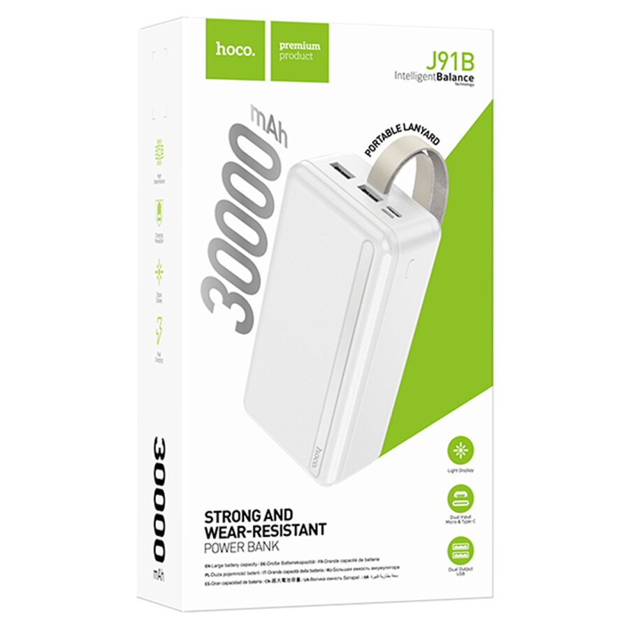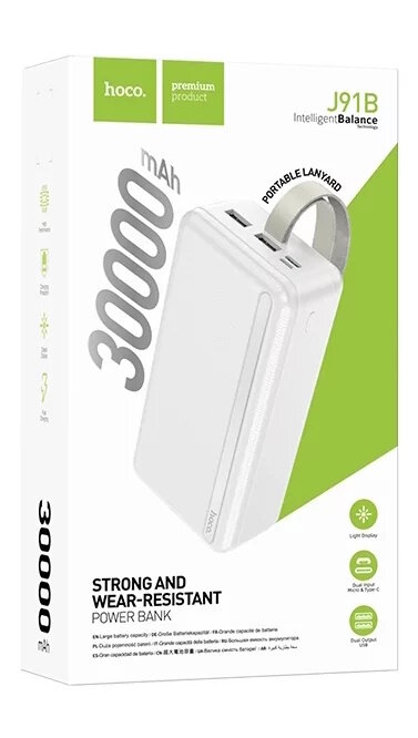 Портативный аккумулятор HOCO J91B, 2.1A, 30000 мА⋅ч, белый, светодиодный индикатор