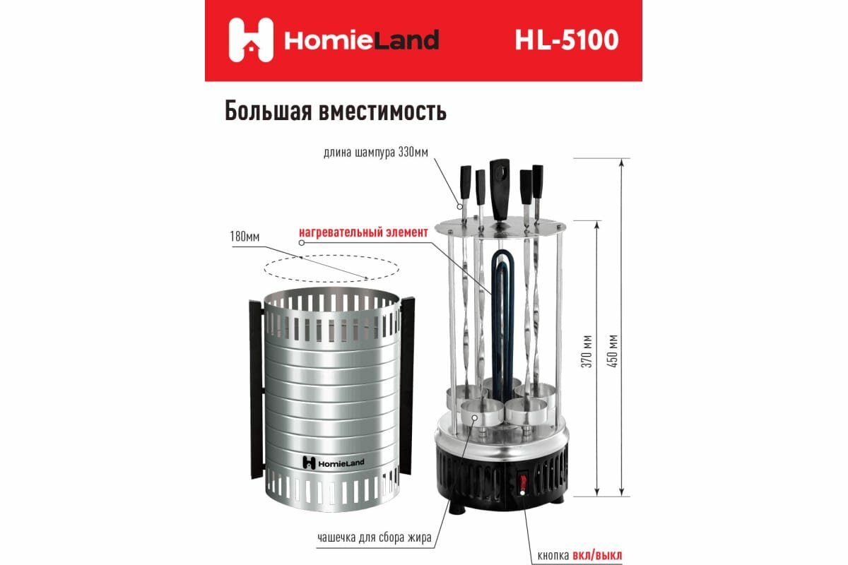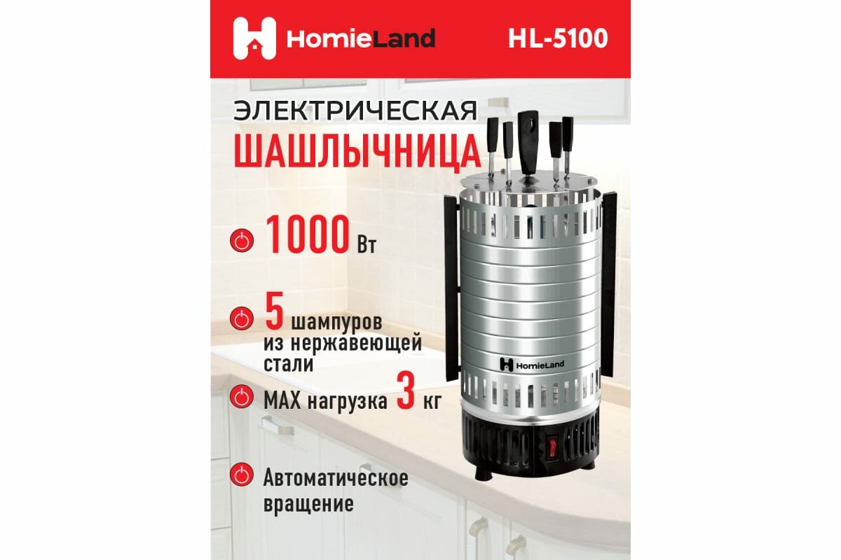 HomieLand Шашлычница электрическая HL-5100, 1000 Вт 00-00014091