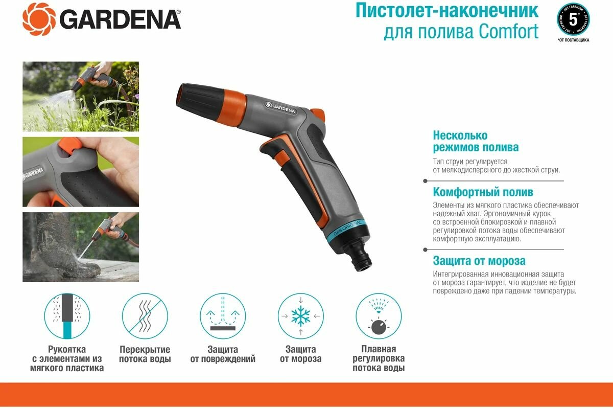 Пистолет-наконечник для полива Comfort Gardena 18303-32.000.00 интересное:
