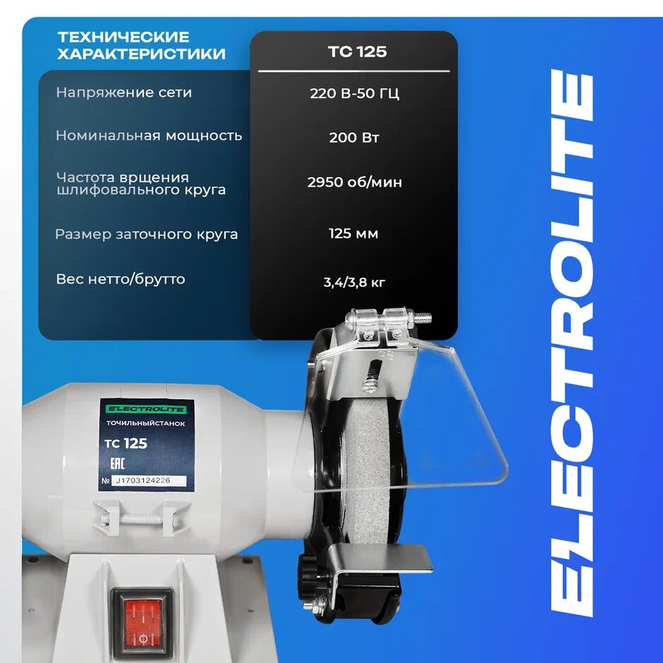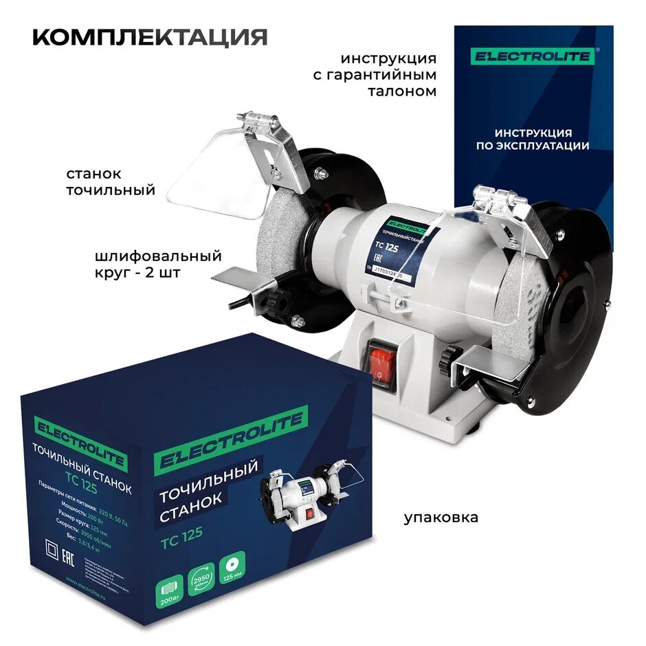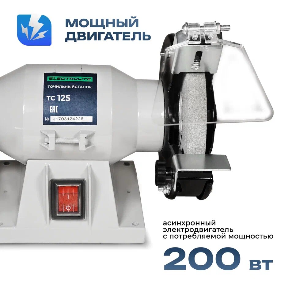 Точильный станок / Точило электрическое / Заточной станок / Наждак электрический ELECTROLITE ТС 125 ( 125 мм диск, 200 Вт мощность )