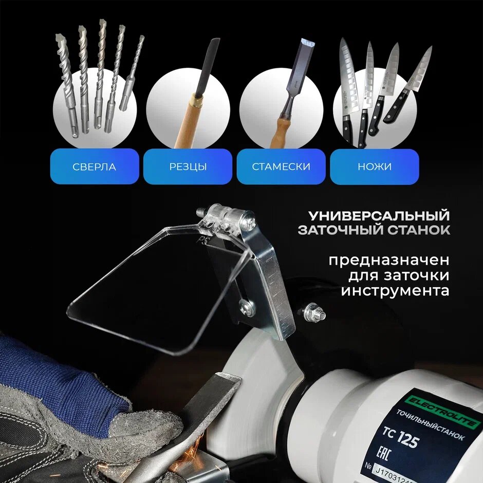 Настольный точильный станок / Электрическое точило для заточки ножей и ножниц ELECTROLITE ТС 125 ( 125 мм диск, 200 Вт мощность )