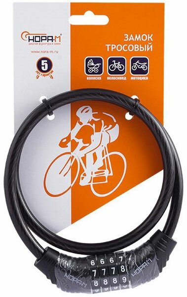 Замок велосипедный кодовый нора-м №21 размер ф8х650мм черный (18990)