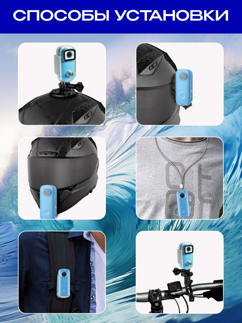 Экшн-камера голубая портативная 4k с чехлом/ Веб-камера wifi с микрофоном/ мини видеокамера для скрытого наблюдения/ беспроводные через телефон
