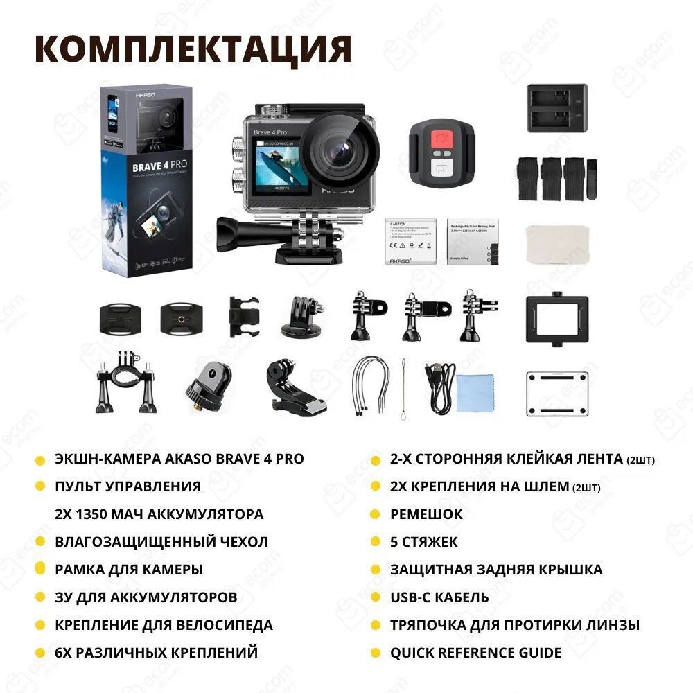 Экшн-камера AKASO BRAVE 4 PRO. Цвет: черный.
