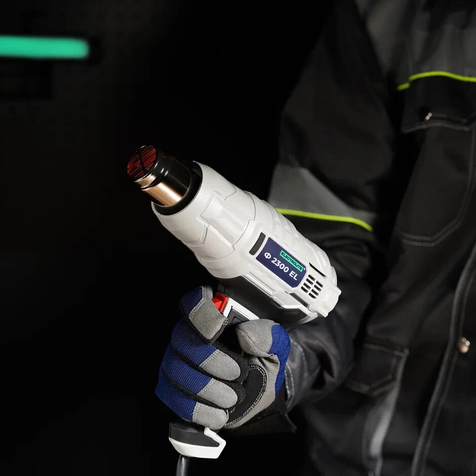 Фен строительный / Фен строительный с регулировкой температуры / Фен для термоусадки / ELECTROLITE Ф2300EL ( 2300 Вт, 220 В, 400/600 С, 300/500 л/мин, обрезиненная рукоять )