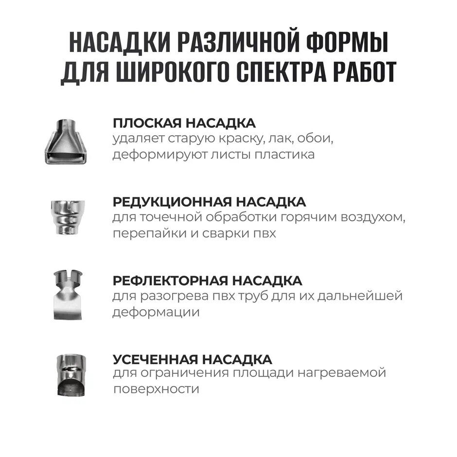 Фен технический (строительный), ЗУБР ФТ-2000, насадки 3 шт, 2 режима: 350град/ 350л/мин, 650град/ 550л/мин, коробка, 2000Вт