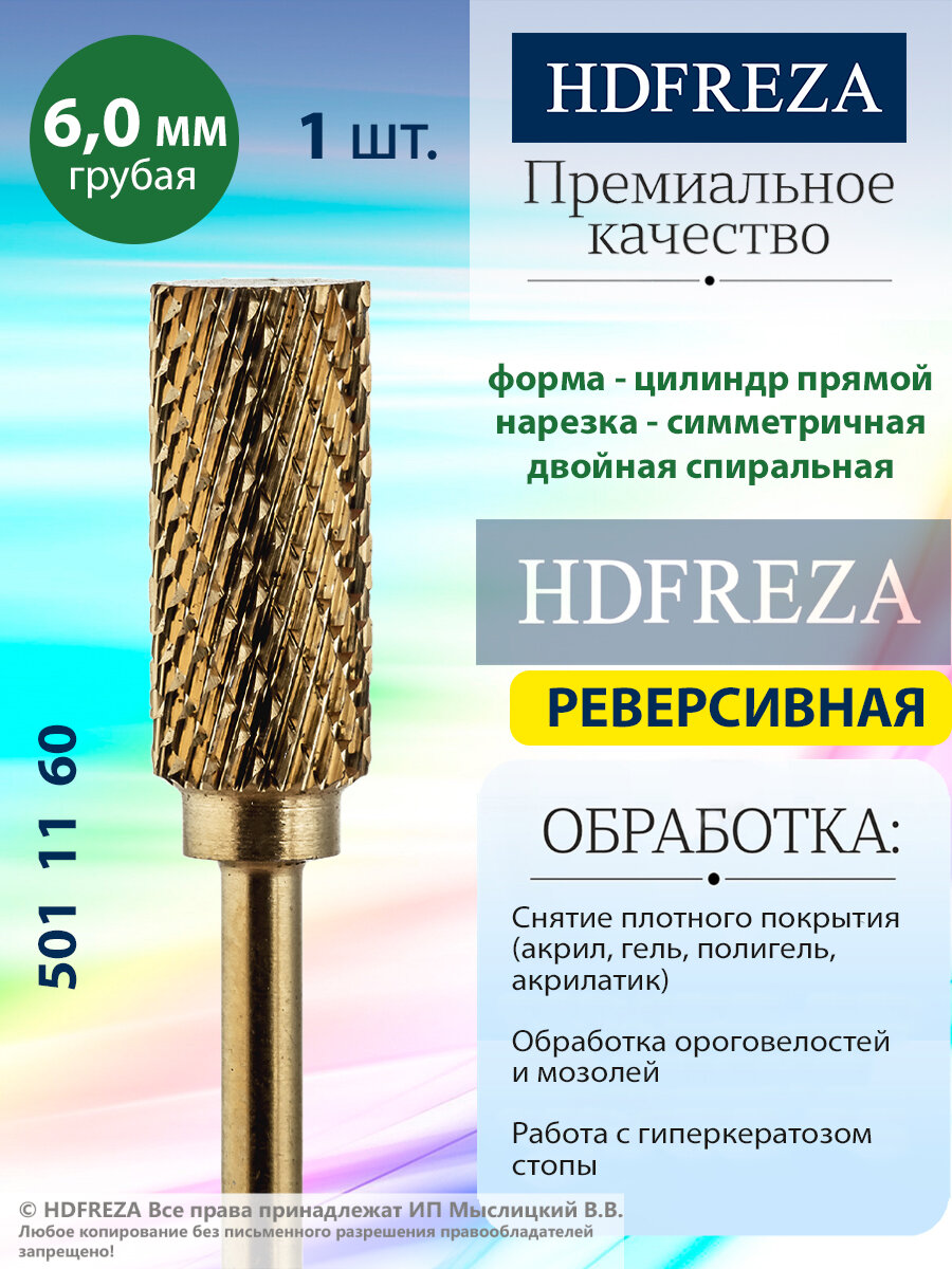 Фреза для маникюра и педикюра HDFREZA твердосплавная реверсивная для снятия покрытия 501 11 60 Грубая цилиндр прямой интересное: