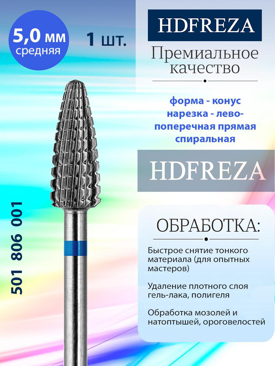 HDFREZA Фреза для маникюра и педикюра твердосплавная 501 806 001 Средняя синяя конус (кукуруза) d-5.0