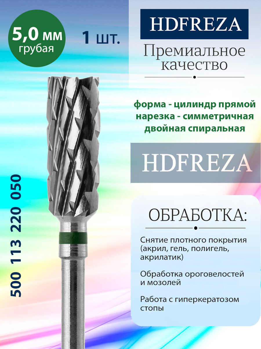 Купить Фреза для маникюра и педикюра HDFREZA твердосплавная для снятия покрытия 500 113 220 050 Грубая цилиндр прямой