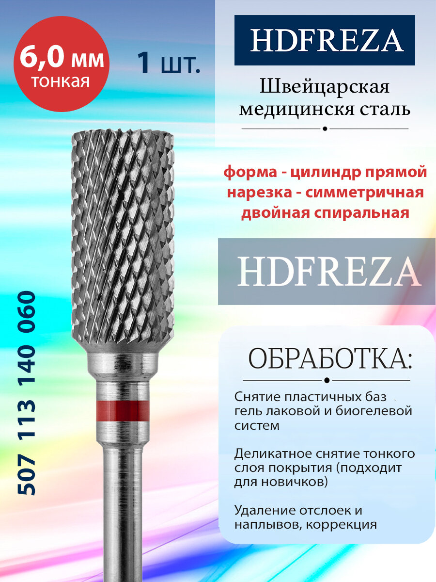 Купить Фреза для маникюра и педикюра HDFREZA твердосплавная для снятия покрытия 507 113 140 060 Тонкая цилиндр прямой