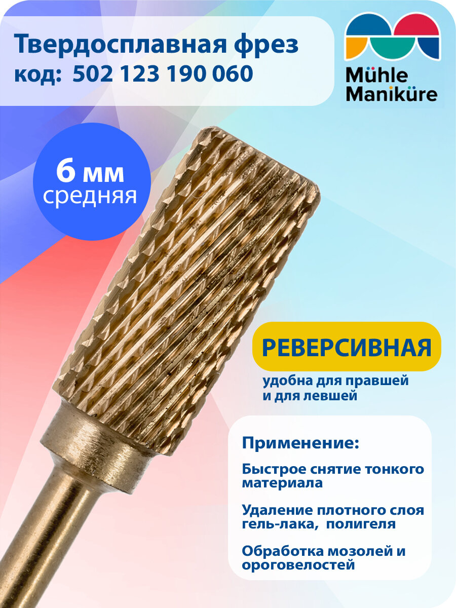 Фреза для маникюра и педикюра Mühle Maniküre твердосплавная реверсивная для снятия 502 123 190 060 Средняя цилиндр интересное: