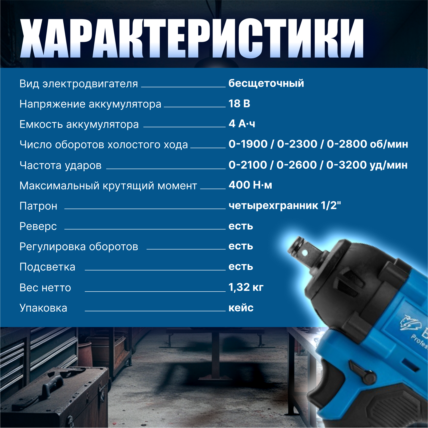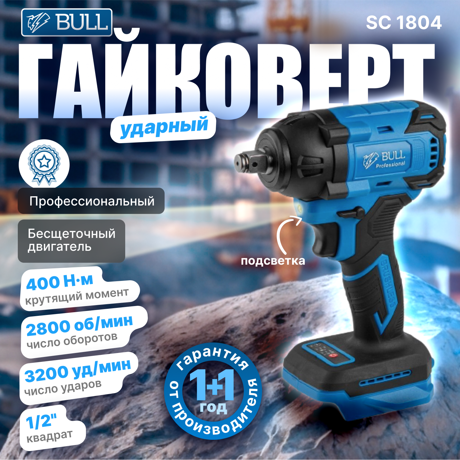 Аккумуляторный ударный гайковерт BULL SC 1804 интересное: