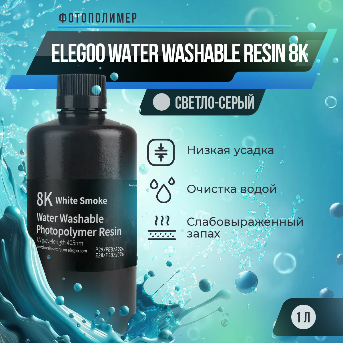 Фотополимерная смола Elegoo Water Washable Resin 8K Серый светлый, 1 л интересное: