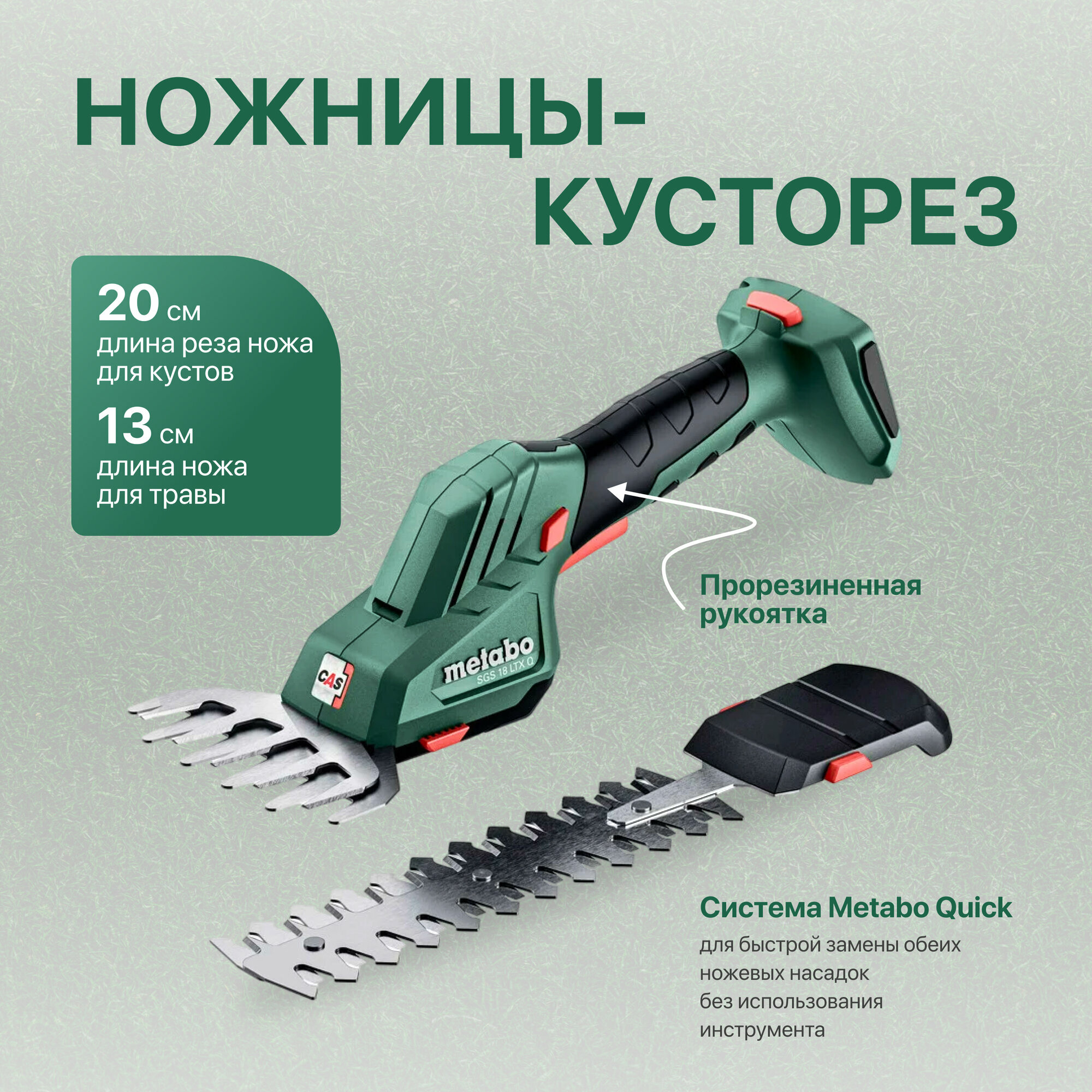 Кусторез-ножницы аккумуляторный METABO SGS 18 LTX Q, АКБ 4Ач + ЗУ + X (T0518)
