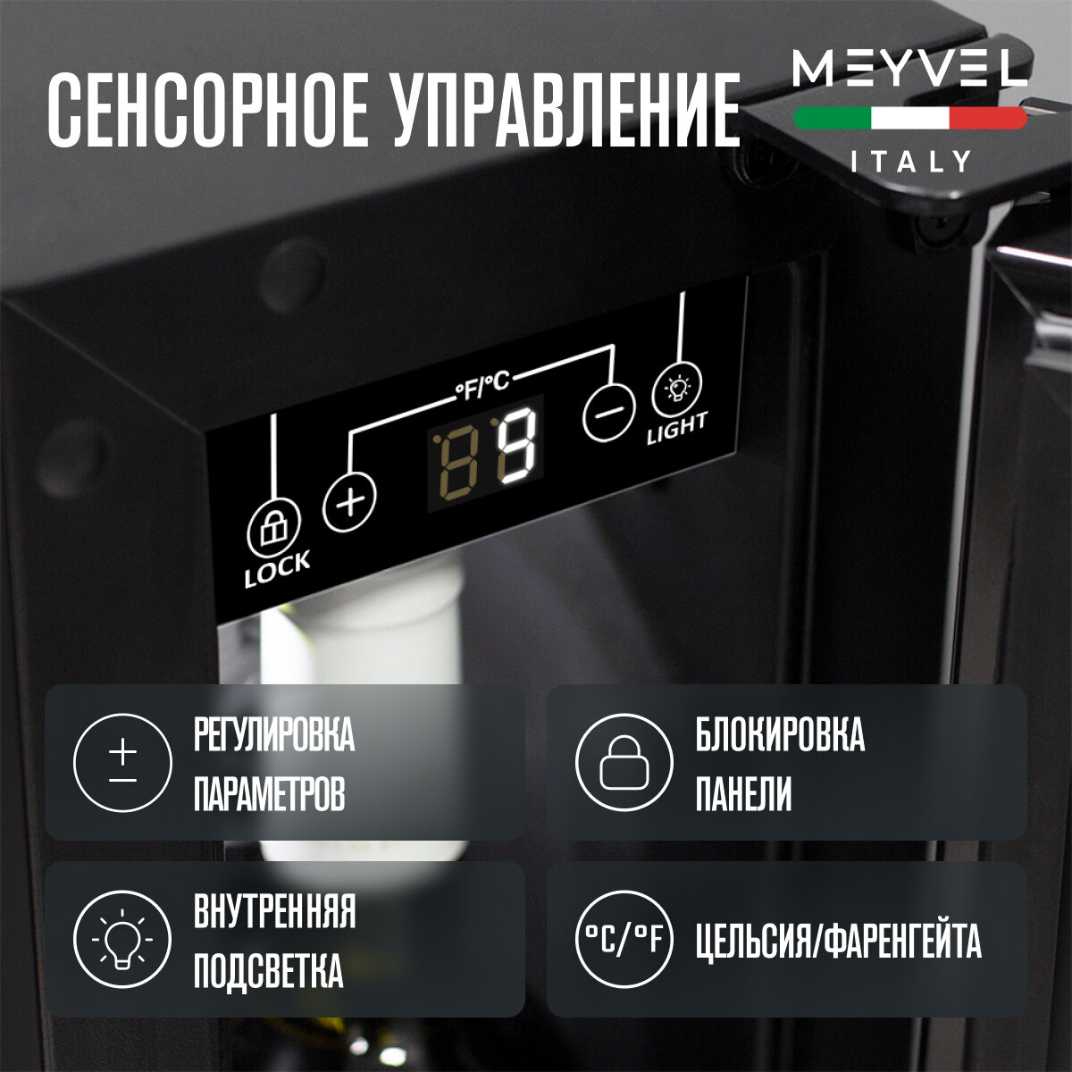 Винный холодильный шкаф Meyvel MV9-KWT1 компрессорный (встраиваемый / отдельностоящий холодильник для вина на 9 бутылок) интересное:
